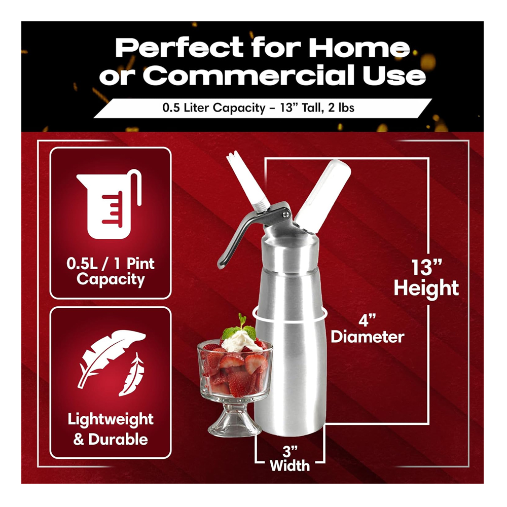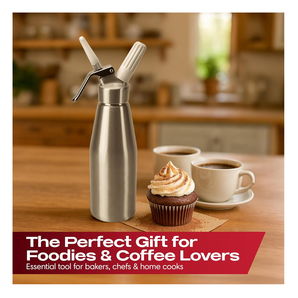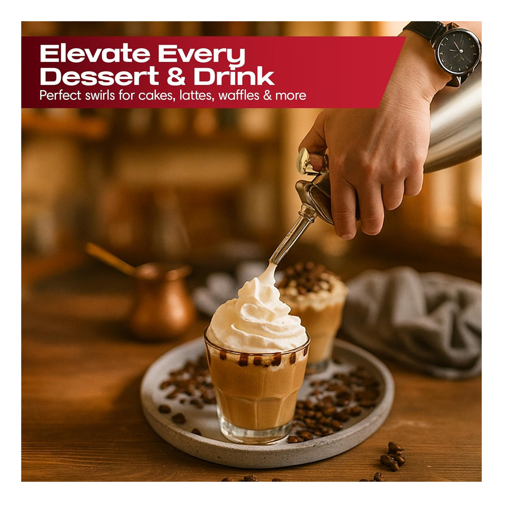 Perfect for coffee shops, bakeries, restaurants, and home kitchens, this professional cream dispenser delivers consistent results and elegant presentation every time.